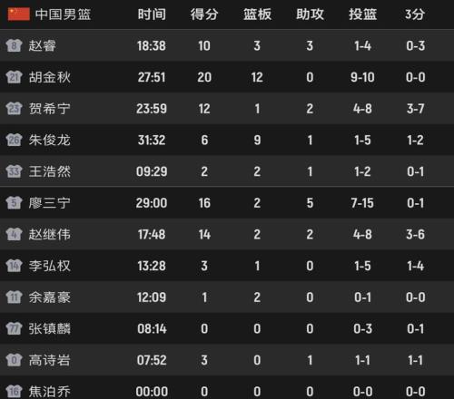来看看本场数据,中国队多人表现出色,5人得分上双,发挥最好的球员没有疑问,当属胡金秋。大秋全场投篮10中9,拿下20分12篮板的两双数据,包括4个前场板,效率太稳定了,末节发挥突出,是中国队逆转的关键。对比周琦,还是胡金秋更加值得信赖。