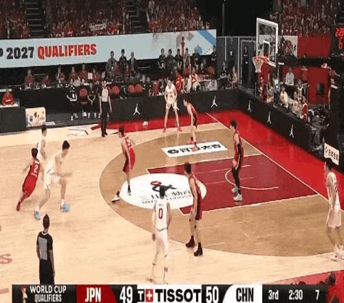 整个上半场,日本男篮外线仅投中2记三分,但两分球命中率高达75%,而中国男篮半场30投11中,全队出现15次犯规。