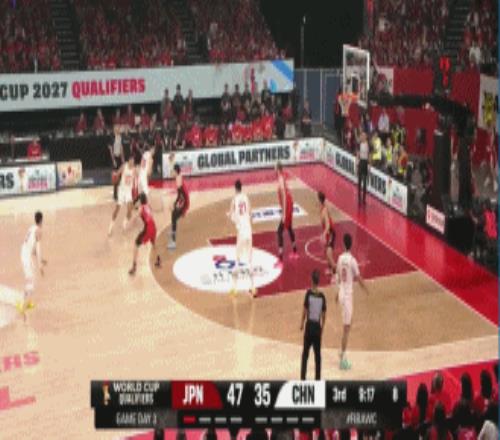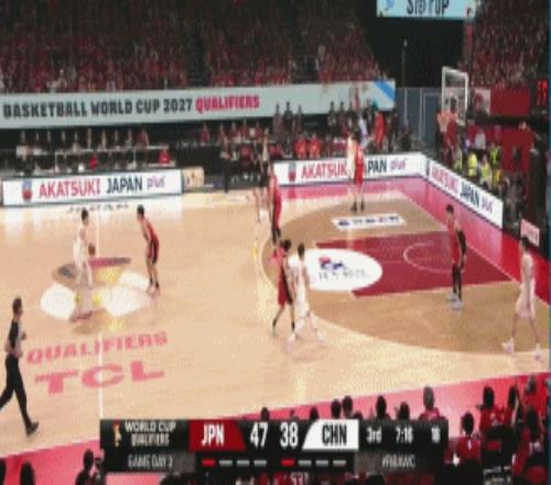 比赛第三节,廖三宁直接突破慢三步上篮命中,随后赵睿抢断加速反击,被原修太撞翻倒地,裁判观看回放后没有升级。贺希宁干拔三分命中,渡边雄太突破造成赵睿第4次犯规,但回来贺希宁又是一记接球三分将日本打停。胡金秋再次攻框和补篮命中打出一波13-0进攻高潮。随后双方连连打铁陷入一段得分荒。渡边飞勇中投为日本队打开僵局,随后高诗岩自信三分命中将比分扳平!