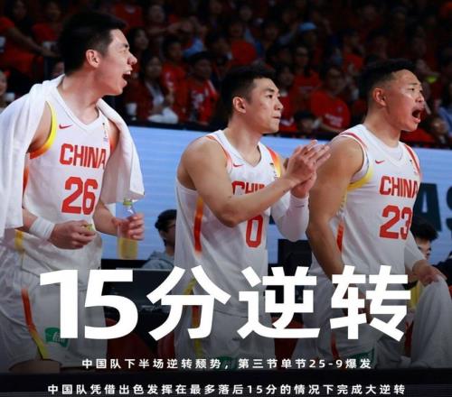 节中郭士强再上高诗岩加强外围防守,4分32秒,裁判发力吹罚贺希宁进攻犯规,但并不能阻挡中国队的攻势,替补上场的高诗岩借大秋挡拆飚进扳平比分的三分,一回合后,余嘉豪持球强杀篮下造2罚1中,中国队打出一波7分钟17-2反超!
