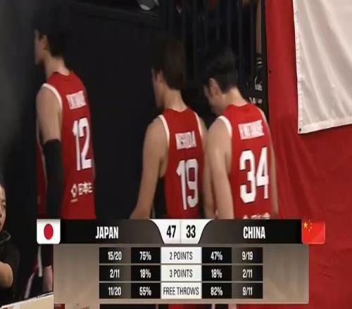 后半节赵睿依靠个人能力连造6罚,李弘权飚进底角三分,王浩然挡拆下顺得手,日本队继续通过灵活的跑动+传切+抢断快攻频频在篮下制造杀伤,保持双位数领先,次节中国队再输4分,半场33-47落后日本。