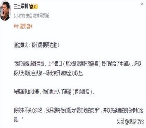 渡边雄太:我根本不关心排名只想将中国队视为“要击败的对手”