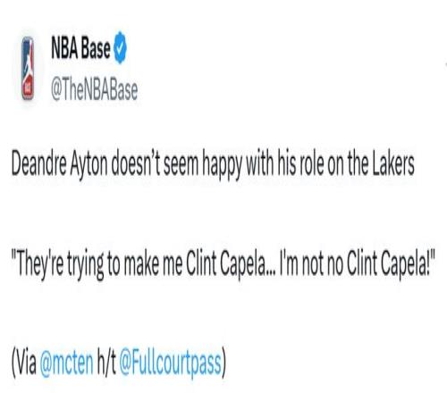 北京时间2月26日,ESPN的湖人记者McMenamin撰文谈及艾顿,这位湖人首发中锋似乎对自己的角色并不满意。
