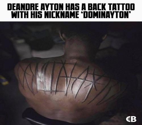 就像詹姆斯肩上的“天选之子”纹身,艾顿后背上也刺着一排粗犷的大写字母:“DOMINAYTON(统治顿)”。