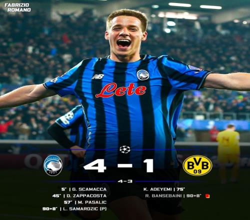 体育播报02月26日宣 欧冠淘汰赛附加赛,亚特兰大4-1总比分4-3大逆转多特蒙德,成功拿下16强门票。